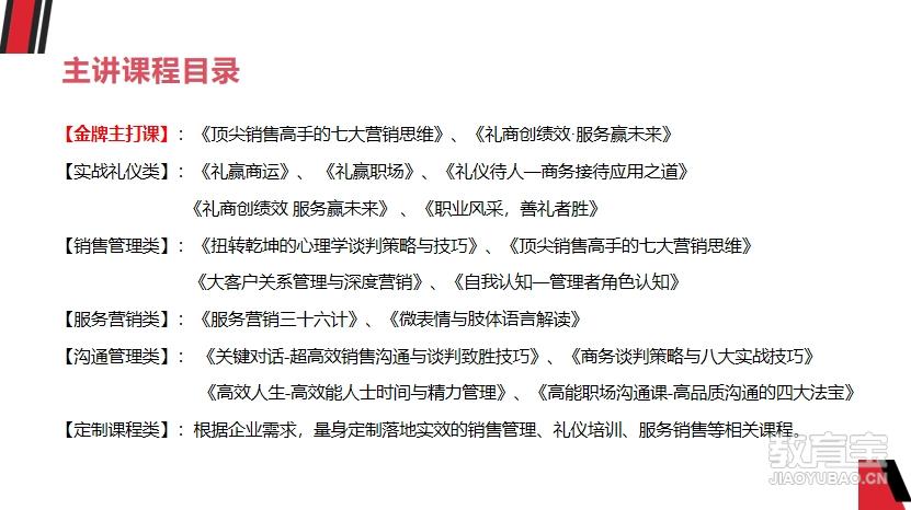 【详情】 华夏智慧,正德厚生,臻于至善。智慧创造财富 合作促进共赢 聚合多元力量,诚信服务社会。华睿正德企业管理咨询有限公司是专门从事企业及个人定制化能力提升的专业机构。企业服务范围涵盖基层员工综合能力提升系列;中高层管理能力提升系列;高层综合素养提升系列;专项训练之销售技巧训练营、招商绩效提升系统课、内训师队伍建设;红色党建研学系列;企业轻咨询;总裁教练、团体教练等项目。个人涵盖综合职业素养提升及职业转型,礼仪培训师培训与认证,青少年礼学美育人才培训与测评,国学文化与礼学中管理智慧的应用与推广。专业基于实践,专注源于热爱,创新来自需求。华睿正德秉承“专业、专注、创新”的核心理念,以“客户满意为起点,实用、落地、有效为桥梁,终生合作为目标”将一生一次的合作转变为一次一生的合作。聚焦企业及个人实际问题,不断创新,采取新的培训方式与理念,采用更为前沿的工具与方法,推动企业及个人高效能发展,为客户创造价值。通过整合相关资源,累计服务上千家企业及职场人士30000+。为职业转型和再就业提供了很大的帮助,同时,也为多所院校大学生提供专业职场软实力训练营和个人职业发展规划方面的指导。 现拥有全国固定师资队伍2000+,其中专职师资200+。知识改变命运,品质赢得未来。华睿正德愿助力企业人才发展,为企业组织绩效提升贡献一份力量,为人才强国上承担更多责任。