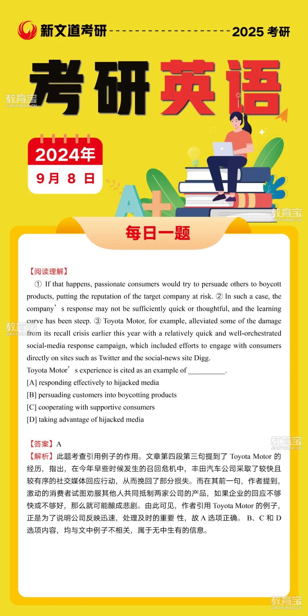 9“ 认真对待当下,未来不会让你失望!”每日一题*1>>考研英语每日一题*1>>考研英语*2>>考研数学*3>>考研政治*4>>考研管综“日拱一卒,功不唐捐。”今天的每日一题结束啦~每天五分钟进步轻轻松松~一起学习打卡吧!