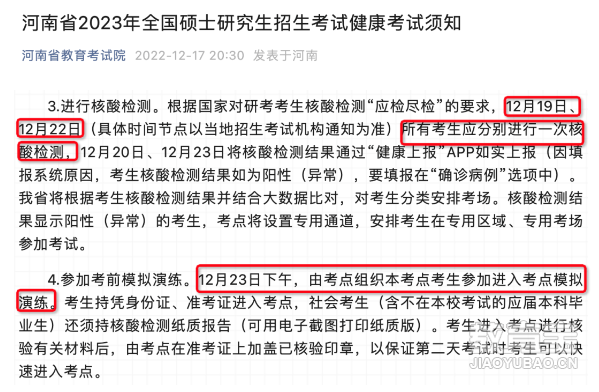 *图源四川省教育考试院各位同学一定要在考前再去自己报考点所在省市考试院看一下,有没有新发的规定和要求,避免因为失误,无法进入考场。往年考研(以河南省为例),有的地区会在考前1天的下午进行考前演练,没有参加的同学也不用着急,模拟演练可参加也可不参加,不是必要环节,但是要求携带的物品必须要带齐!