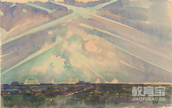 宗其香《国庆节前的天安门》,纸本水彩,27×40cm,1954年