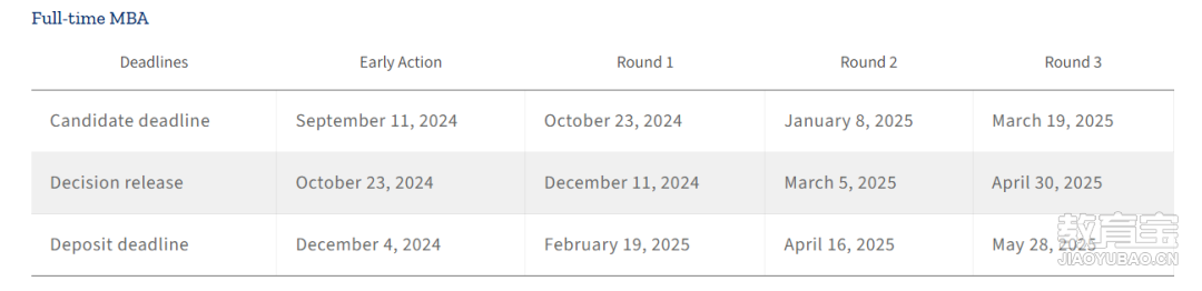 申请要求:*语言要求:托福不低于80或雅思不低于7.0(6.0);*其他:不要求提交GRE/GMAT,但强烈建议GPA低于3.3的申请人提交。06??约翰霍普金斯大学约翰霍普金斯大学25Fall商学院项目申请已经开放。全日制MBA早申截止日期:2024年9月11日第*轮截止日期:2024年10月23日第二轮截止日期:2025年1月8日第三轮截止日期:2025年3月19日