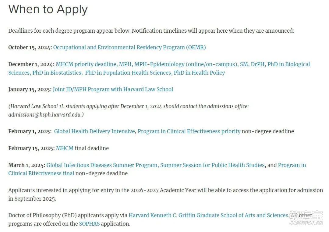 01??哈佛大学哈佛大学T.H. Chan公共卫生学院已经开放2025年秋季入学申请。开放硕士项目包括:*Master of Public Health*MPH in Epidemiology*Master in Health Care Management等Master硕士项目申请截止日期:2024年12月1日