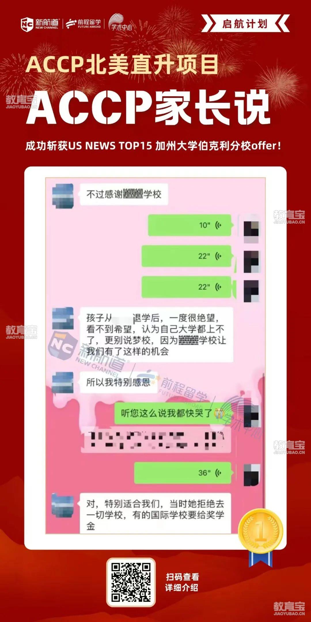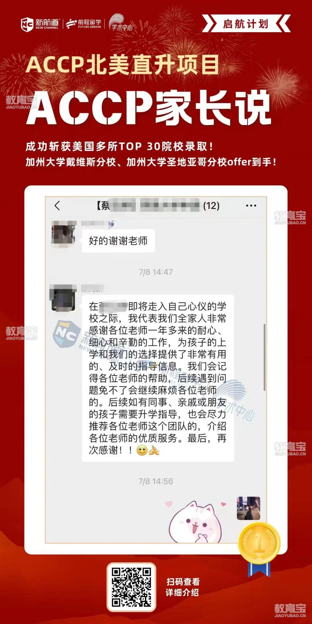 7扫码了解更多NewChannel如果你也想让自己的孩子获得世界学校的青睐,请立即扫码领取你的ACCP项目1对1专属顾问服务,让我们用专业助力你的升学梦想~