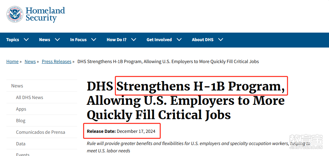 2024 年 12 月 17 日,美国国土安全部公布了一套针对 H-1B 工作签证的现代化改革方案,主要内容如下:??重新定义 “专业职位”只要申请人能够证明自己的专业学位能密切贴合岗位需求,就允许跨专业申请 H-1B,但一些笼统宽泛的专业如 “工商管理” 等,不能算作是 “专业职位”。比如软件工程师职位需要计算机科学、软件工程等专业学位,若申请人持有普通商学或文科类学位,则需提供额外证据证明关联性。??扩大免抽签 H-1B 的适用范围非营利和政府研究组织将被定义为以研究为 “基本活动” 的机构,而非此前 “主要从事” 或 “主要任务” 的模糊标准。如果 50% 以上的时间都在为这些符合条件的机构提供关键支持工作,那么即使不是直接受雇于这些机构,也可以申请免抽签 H-1B 。??创业可给自己申请工作签证如果受益人拥有超过 50% 的公司股权,可以为自己申请 H-1B,不过其初次申请和初次延期的有效期将被限制为 18 个月。期满后,H-1B 创业者可以继续申请续签,并且如果公司符合所有要求,H-1B 签证可延长至*多 6 年。??明确工作地点变化的申报要求雇主必须在 H-1B 雇员工作地点发生重大变化时提交修改申请,同时新规也确认了无需提交修改申请的例外情况,例如工作地点变动仍在现有劳动条件申请(LCA)覆盖的就业区域范围内。??授权就业 “cap-gap” 的自动延期将 cap-gap 截止日期从现在的 10 月 1 日,延长至来年 4 月 1 日。即使因为 RFE 等问题导致中签者 H-1B 未能在 10 月 1 日前获批,也能正常工作至来年 4 月,在此期间等待 H-1B 批准 。