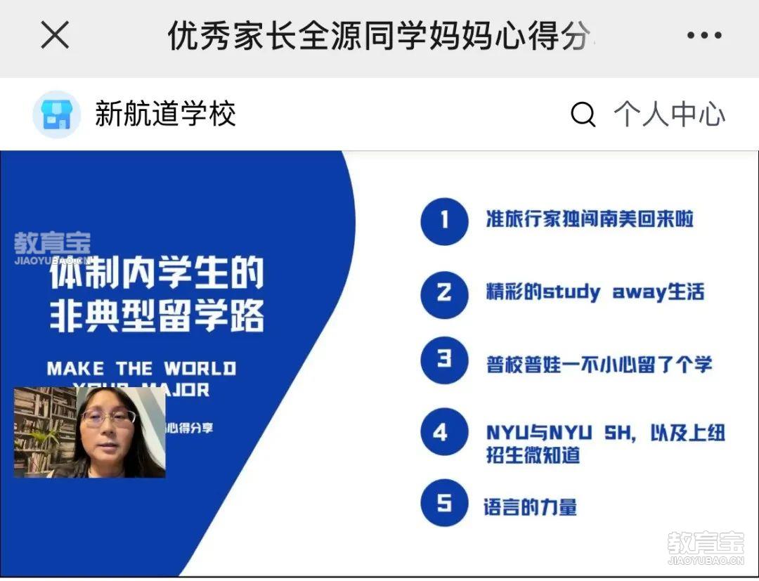 新航道前程留学长沙美研项目部顾问李敏老师详细解答了为什么去美国留学,从24年美研申请数据进行分析,详细解说美研申请需要准备的材料,需要打造申请核心竞争力,做好留学规划路线,通过相关留学案例为有出国留学准备的学生提供满满干货。4体制内学生的非典型留学路 全源同学妈妈
