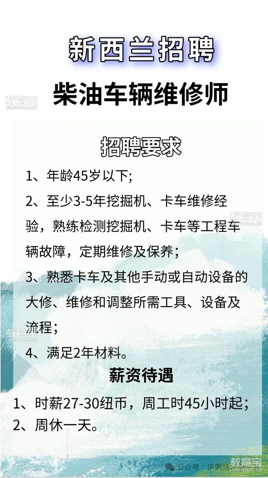 新西兰????新增岗位可参考下图(较多,没放全部,可私信了解)