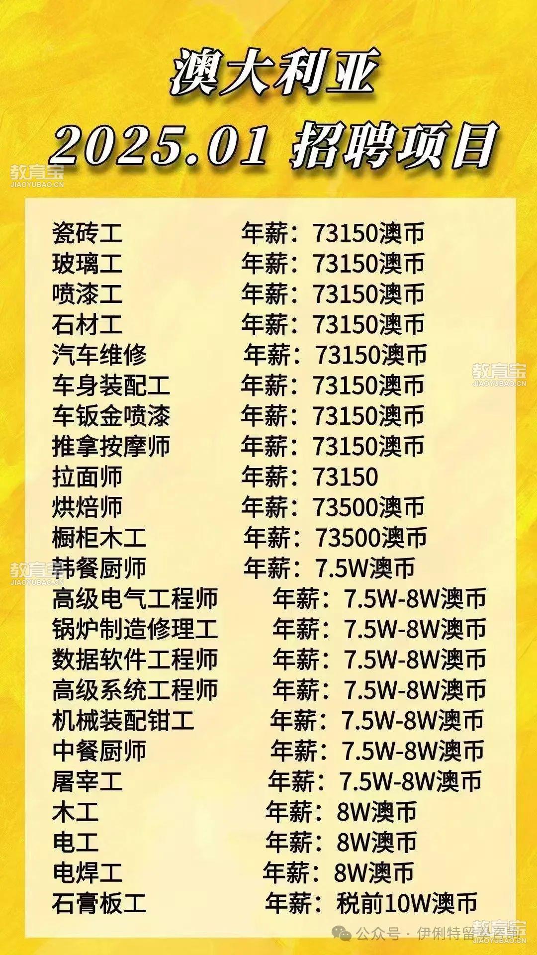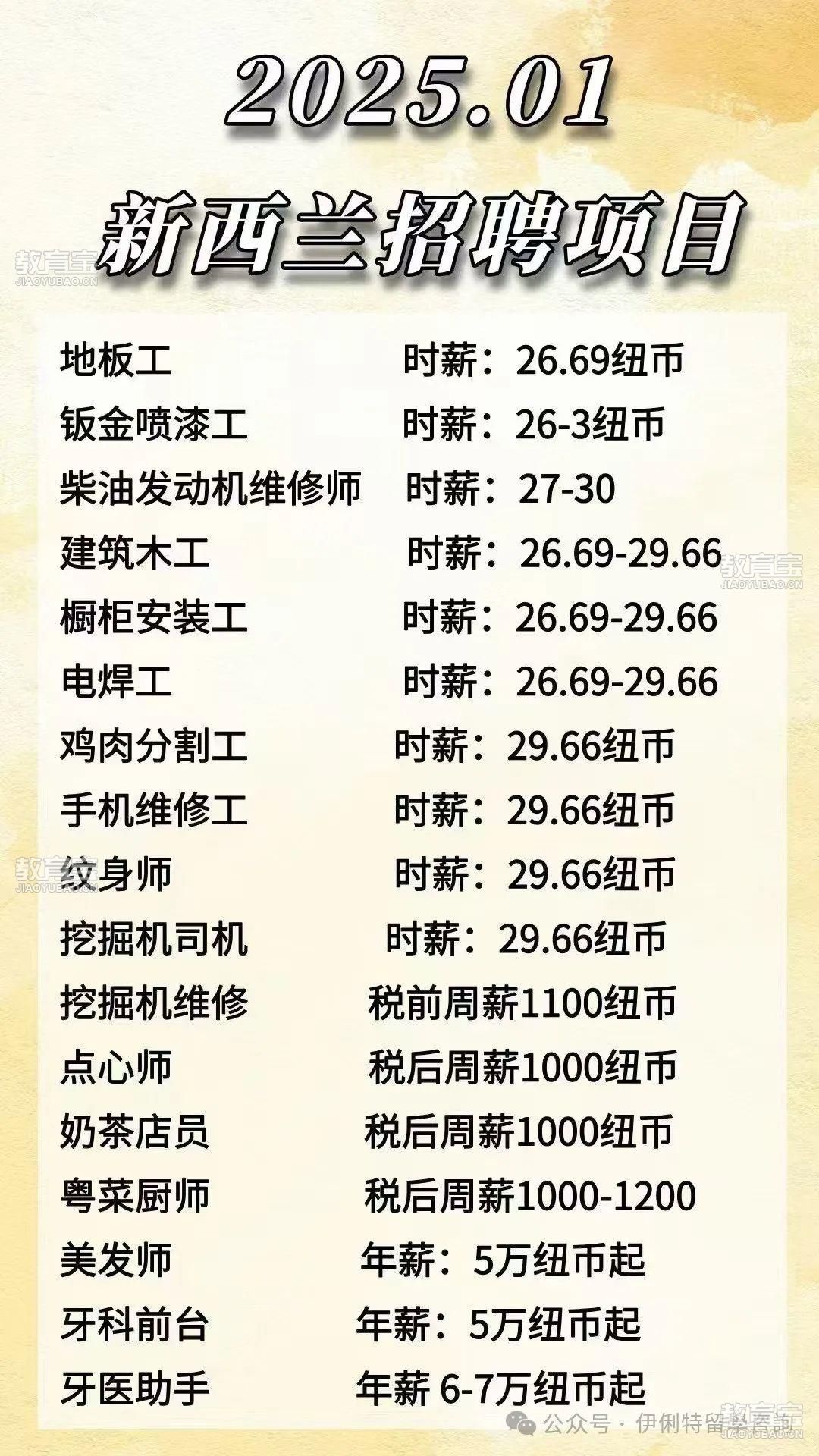 2025年1月份的澳洲和新西兰的工作岗位出炉了!以上岗位欢迎索取简章,免费咨询!??澳大利亚482改革后经验要求已降低门槛??新西兰无雅思*依然可申请正规工作签1.0到6.0的一些岗位还找人。有需要的同学们可以参考我们之前的帖子。想换个大环境而且有兴趣赚澳币和纽币的同学可以联系我们进行咨询。伊俐特移...
