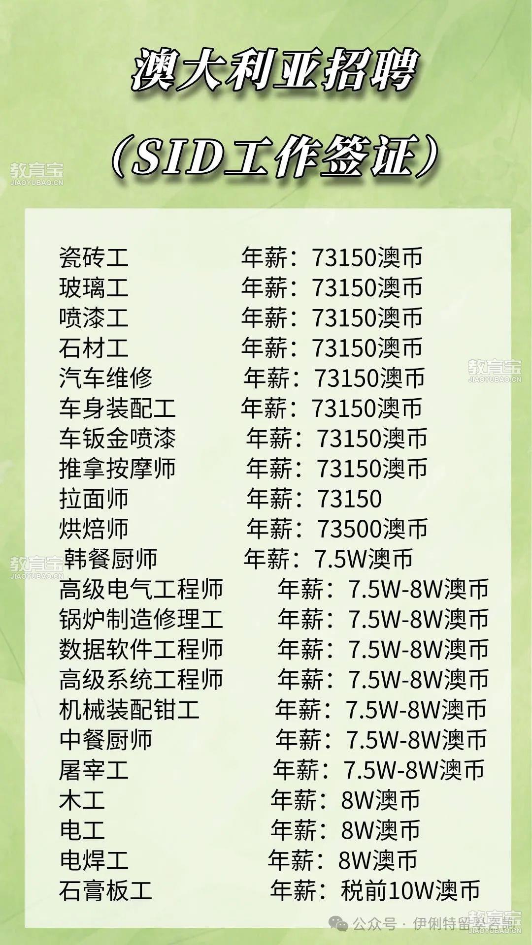 之前错过同学们也不必担心~1.0到5.0的部分岗位还找人,有需要的同学们可以参考我们之前的帖子。想换个大环境而且有兴趣赚澳币和纽币的同学可以联系我们进行咨询。伊俐特移民工作留学咨询也提供:-海外工作招聘,澳洲工作签和移民签证以及留学服务;有兴趣的同学们可通过以下联系方式联系我们。