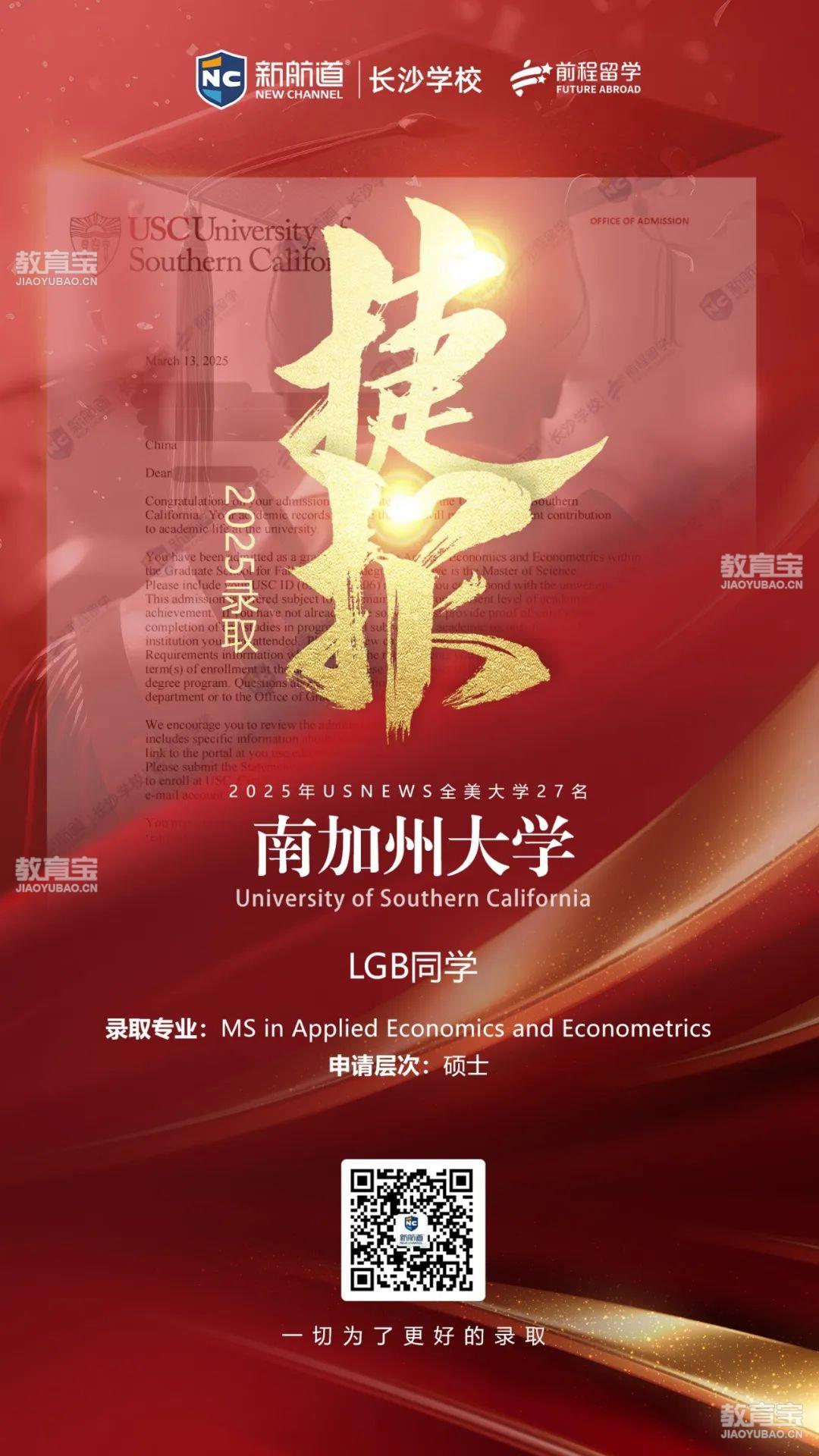 南加州大学 恭喜长沙新航道LGB同学 ……硕士录取!