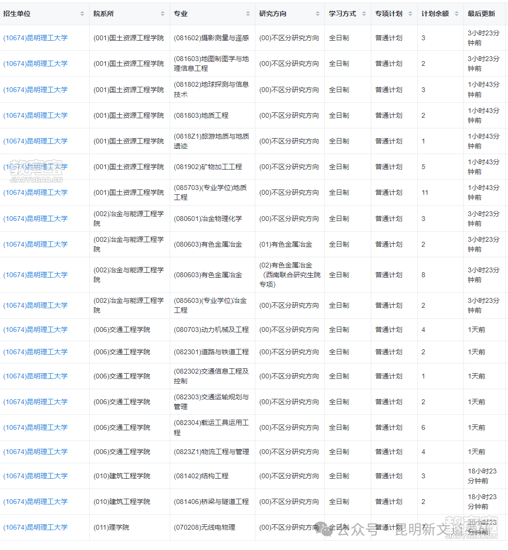 昆明理工大学放出二轮调剂名额了