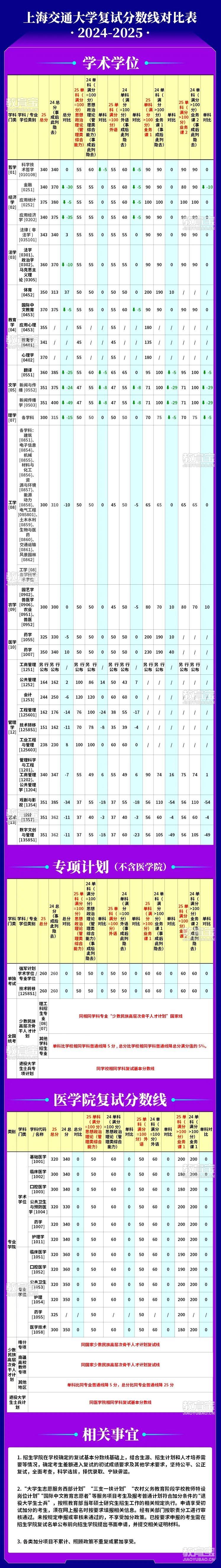 上海交通大学考研复试分数线对比表(2025、2024)