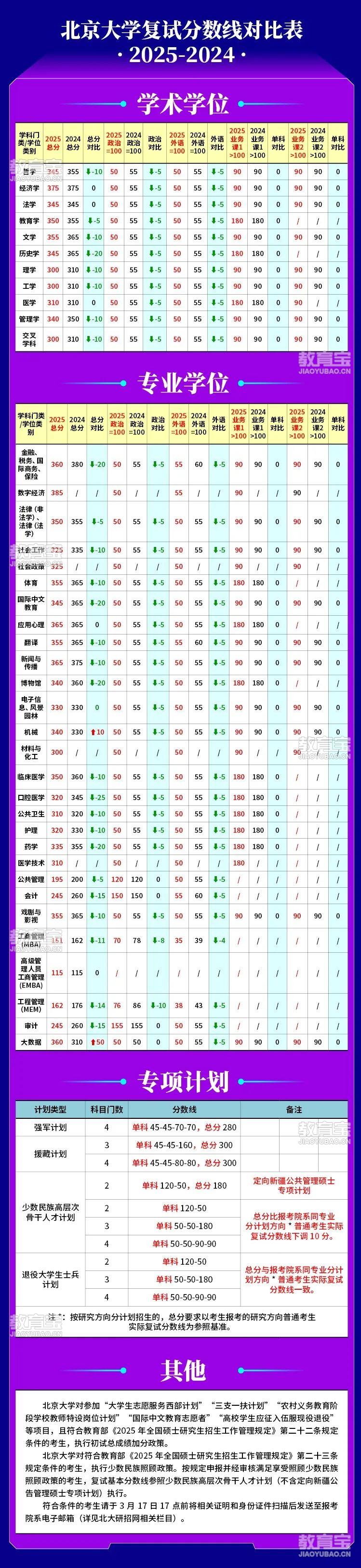 34所自划线院校分数线终于在路上了!近期分数线陆续公布海盐姐为你准备了25考研、24考研分数线对比有的院校专业降了61分!一起来看看!北京大学考研复试分数线对比表(2025、2024)