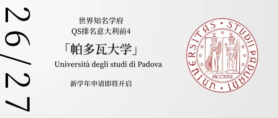 帕多瓦大学2026-27学年网申专业时间得记清楚:有名额限制的英语授课本硕专业,开放时间是2026年1月7日到3月7日;没有名额限制的,不管是英语授课本硕还是意大利语授课硕士,第*轮11月2日就开始,到明年2月2日结束,第二轮是3月2日到5月2日。申请平台是apply....