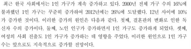 小作文——基本阶尽管强调了很多次,小作文应该用基本阶。但,依然有很多同学在写作时习惯用口语或?/??、???等形式,甚至出现了三者混用(X),这种情况必然扣分。另外,如果作文中提及调查问卷、图表中的数据,应该用过去时。因为调查已经结束,数据结果已经呈现出来了。05注意隔写尤其是助词之后一定要有隔写,例如?/?,?/?,?/??,?/?后面一定要空格 隔写错误是写作中常见的扣分点。如果没办法做到所有的隔写都正确,*起码助词后要有隔写,这个再明显不过了。06不要写标题明明题干中都提及‘不要写标题’,但习惯了中文写作的同学,总是画蛇添足。接下来,韩语菌为大家整理了一些小作文常用句式,供参考:1)?? ??? ??? xxx%? ?? ???,yyy%? ??? ???. 根据调查结果显示,xxx以%占比*高,yyy以%紧随其后。2)?? ??? ??? xxx%,yyy%,zzz? ????. 调查结果显示,xxx占比%,yyy占比%,zzz占比%。3)…?? ?? 1?? ?? ?? ?????? ???…, …?? 2?, 3?? ?????. xxx占据第*位,接着xxx、xxx占据第二、第三。4)? ???? ??…?? …??? ????. 出现这样结果的原因,首先是…其次是…5)??? ??? ???? ??…?? ? ? ??. 如此增加的原因,首先可以认为是…6)xxx?? ????? xxx?? ???? ?? ???? ????. 增加到xxx后用减少到xxx,接着又开始增加。7)?? ???? 大幅增加?? ???? 大幅减少??? ????/???? 急剧增加???? ???? ???? 急剧下降8)??? ????? ???? 持续增加 ???? ???? ??? ?? 呈现持续减少的势头??? ???? ?? 一点点增加