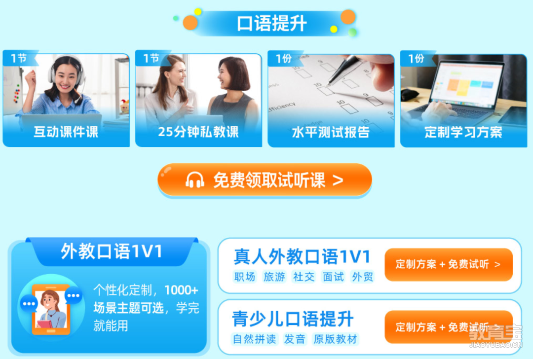 SUMMER TIME课程全覆盖,总有一款适合你:暑期特惠1对1外教口语外教定制化陪练,纠正中式发音,开口说不再难!