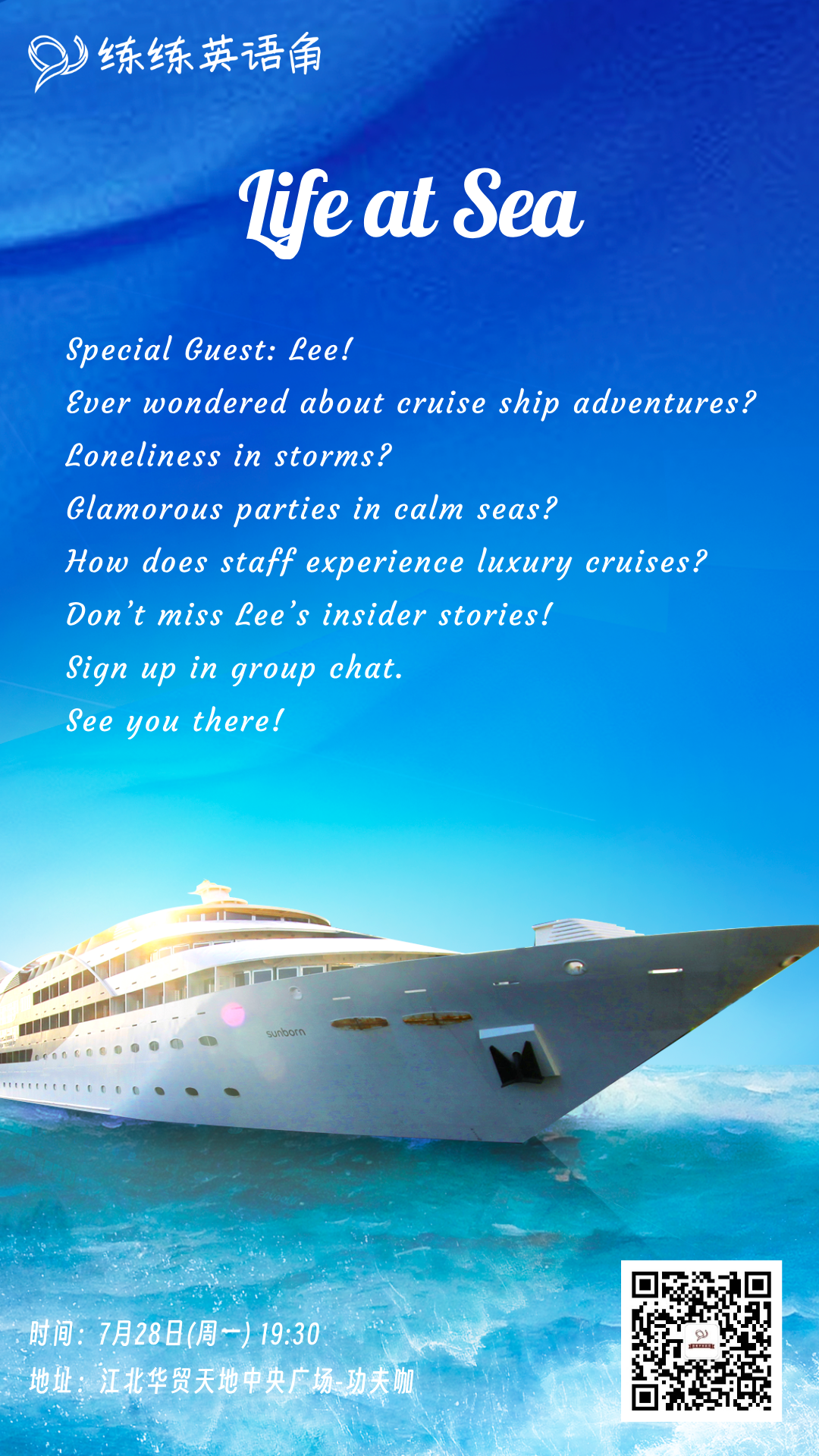 本期主题【Life at Sea!(游轮秘境·船员视角)】,我们邀请了海上工作者Lee分享了她在国际游轮上工作的亲身经历。从日出到日落,她带我们走进了这个鲜为人知的职业世界——不同的工作节奏、来自全球的同事协作、跨文化服务中的趣事与挑战,以及漂浮城市背后不为人知的规则与温情。同时,Lee在现场分享了...