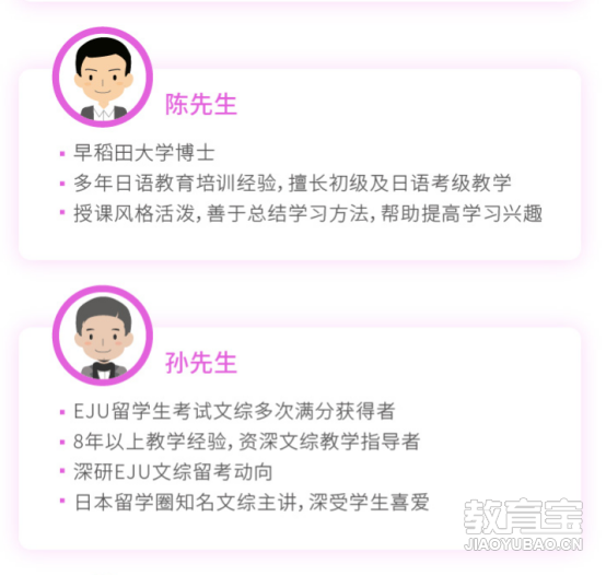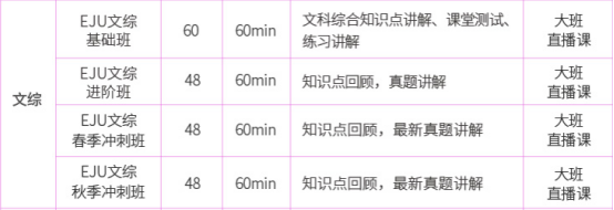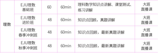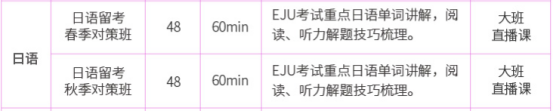 日语、文/理数、文/理综均有EJU单科的学习,无论是日语还是数学,文理综是非常重要的,要进行系统的EJU学习才是考取学校的*佳途径。我们沪江网校在留学之路上负重前行数十载,有着*全的知识和智囊团储备,如果你有留学的想法,「どうぞお気軽にお問い合わせください。」我们在这里等你。