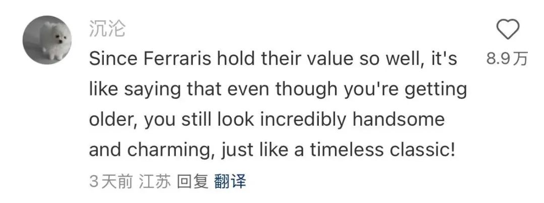 看来本尊也很疑惑,为什么大家叫他“Mr Ferrari”?评论区一位名叫@沉沦的江苏网友用英语做出了解释,获得了8.9万的赞,看到没有,学好英语还是很有用处的!