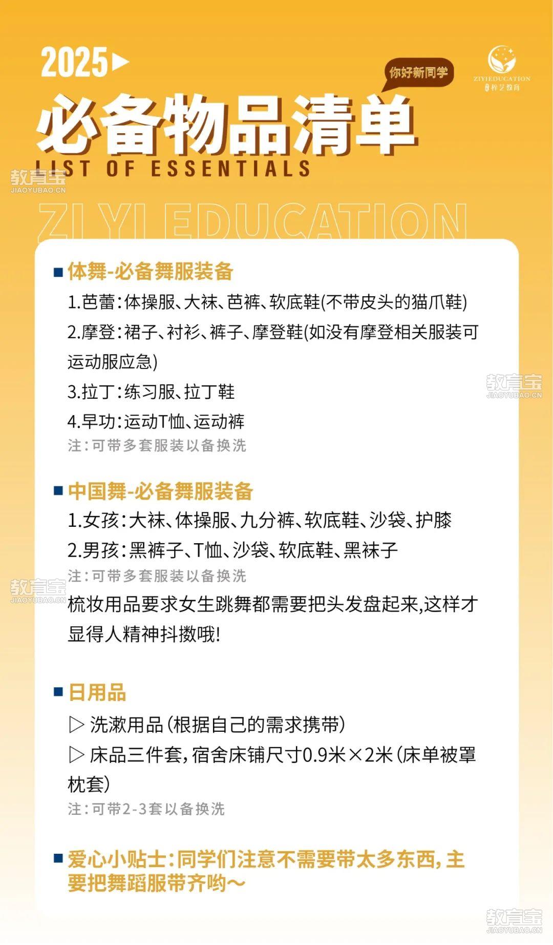 在梓艺的集训生活即将拉开帷幕,这份新生入学指南请注意查收!
