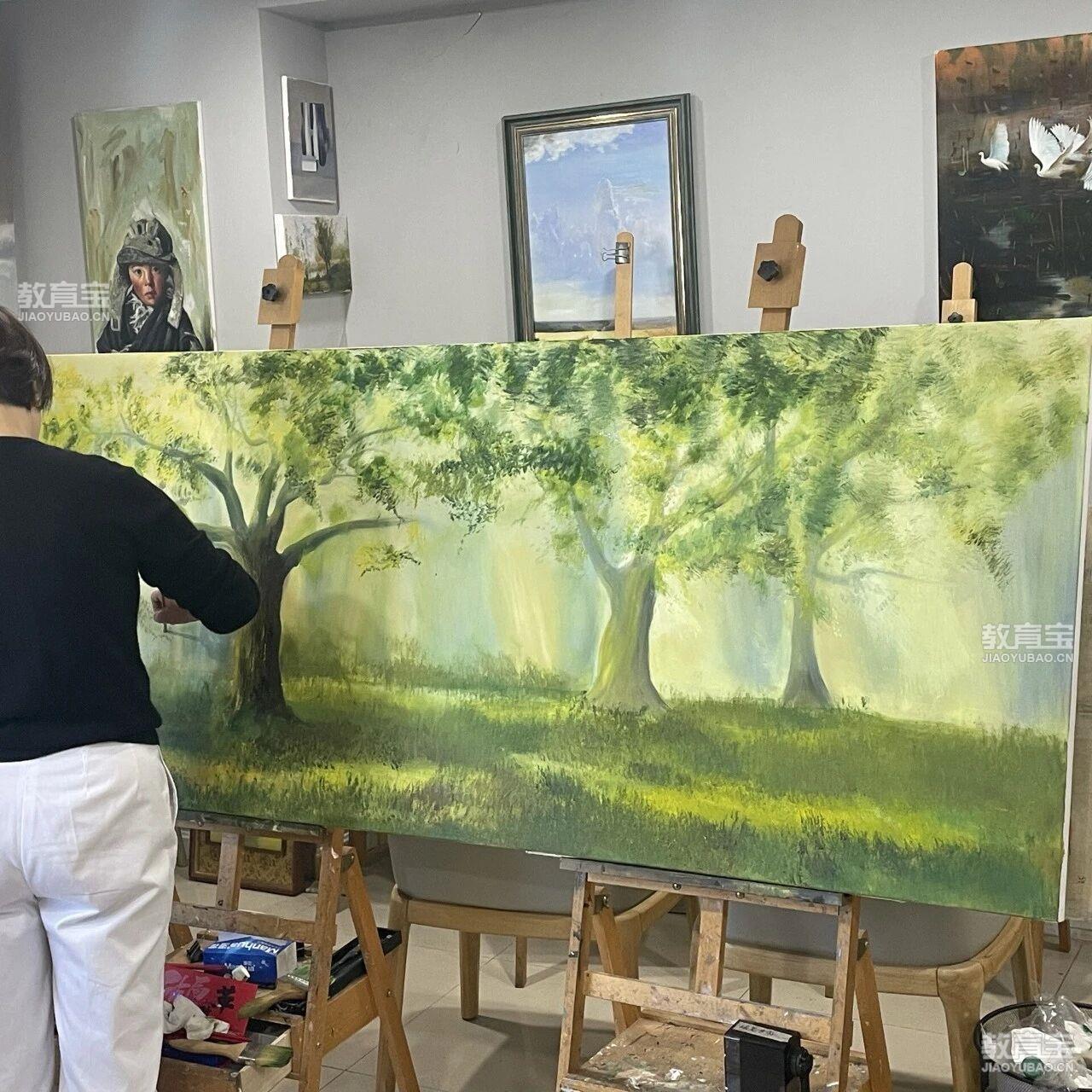 今天翻到学员的油画作业,突然想挑幅有意思的和大家唠两句——我们的油画课主要盯着风景创作,偏自然风光那挂,没搞什么花里胡哨的抽象玩法。其中有幅画鹿群在森林里的,特别戳人——不是随便画群鹿站树底下,光是森林里的光就藏了好多小心思。光影是叠着来的:树叶缝漏的光斑软乎乎的,打在...