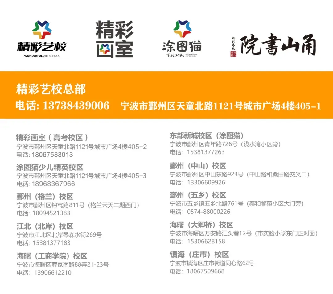 2025/9/14 0:04:11“宁波精彩美术培训”是宁波精彩涂图猫艺术特长培训有限公司在教育宝平台开设的店铺,若该店铺内信息涉嫌虚假或违法,请点击这里向教育宝反馈,我们将及时进行处理。