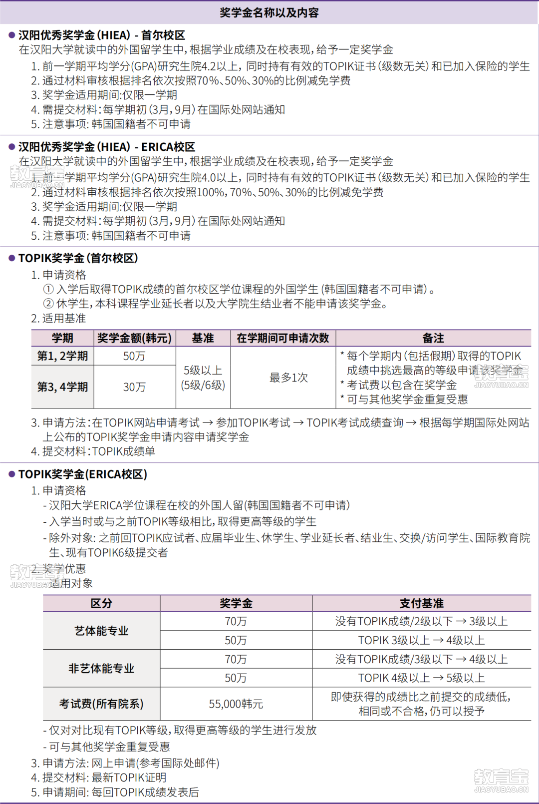 院校简介汉阳大学(韩文:?????,英文:Hanyang University),简称汉阳大,是一所本部位于韩国首尔的私立综合性大学。该校为亚太国际贸易教育暨研究联盟(PACIBER)、亚太国际教育协会成员、韩国BK21工程?越卓?高校、AACSB认证大学之一。汉阳大...