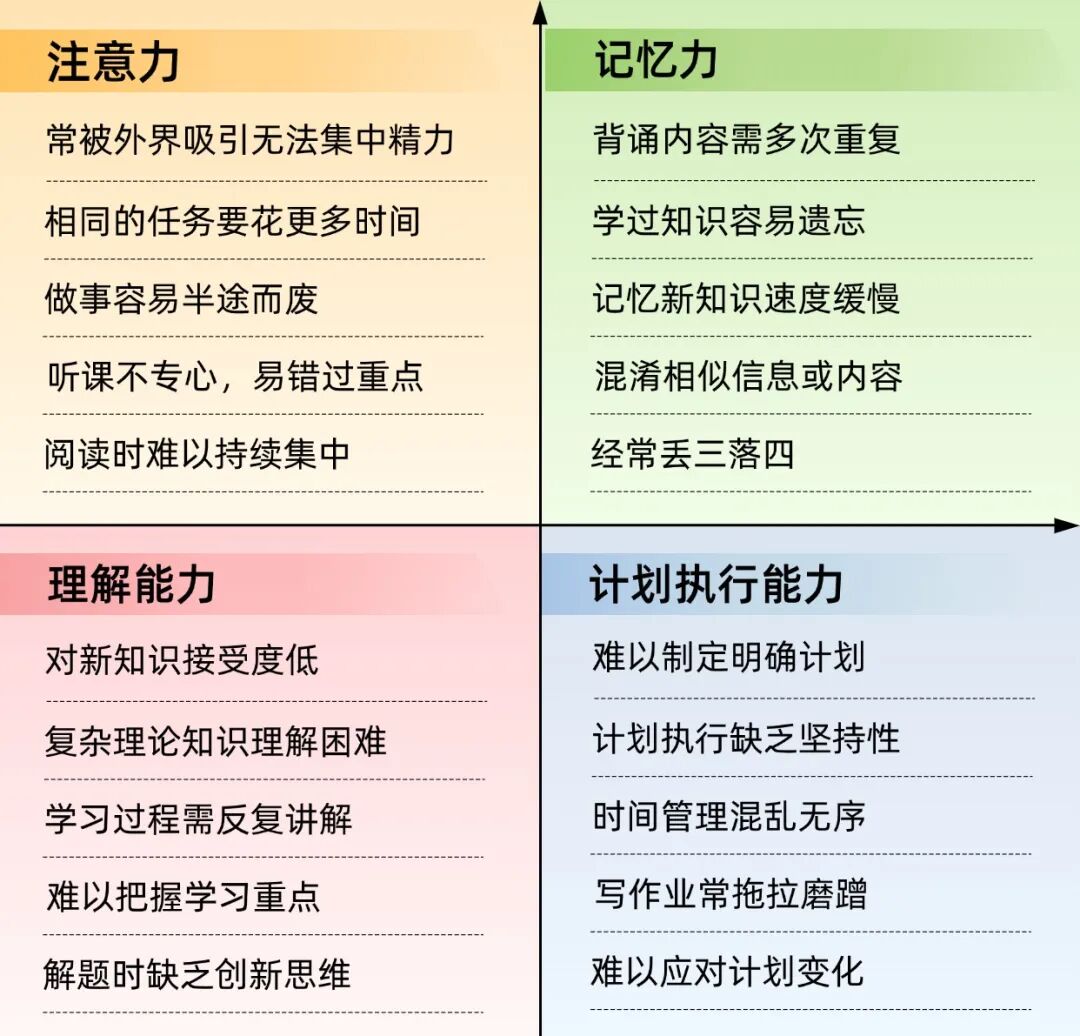 01开学前规划误区很多家长为开学衔接拼尽全力:熬夜列“收心时间表”:7:00背单词、14:00补数学、19:00预习钟;盯着孩子赶作业、补预习,恨不得替孩子“把假期窟窿填上”…但结果往往是:计划执行超不过3天,孩子一听“开学规划”就犯怵,假期收尾彻底失控,开学衔接直接“崩盘”!问题出在哪?不是家长不够努力,而是没抓对开学衔接的核心——比起硬塞任务,更该关注孩子的学习方法、习惯和能力!开学后能不能“顺”,早在假期收尾的“能力储备”里定了调!02开学前,家长挠头的3大难题假期收尾阶段,不同层次的孩子,焦虑截然不同:1优等生:怕假期松懈,开学后“优势缩水”;2中等生:想“开学超车”,却不知从哪补、怎么收心;3后进生:作业都赶不完,更怕开学后差距越来越大。很多家长以为“突击补作业、补预习”能解决问题,却忽略了:突击只能救“假期作业”,开学衔接真正的关键,是帮孩子打造“学习方法/习惯/能力”的底层优势。03开学衔接重点同样是假期收尾,为啥有的孩子能自主收心、高效预习,开学后无缝衔接?有的却越催越乱,开学就掉队?答案藏在“学习能力”里:能力强→收心快(知道自己该做什么)、预习高效(方法对,效率高)→开学衔接顺(越学越有成就感);能力弱→收心难(盯着手机挪不开眼)、预习混乱(翻书像“扫盲”)→开学更焦虑(越催越没动力)。简单说:开学后的,始于开学前“学习方法/习惯/能力”的储备;假期收尾的混乱,也是这些底层能力滞后的结果。04开学前用科学规划破局想帮孩子在开学前真正“稳住节奏”,关键是“先找问题,再定计划”——盲目列收心计划,不如先搞清楚孩子的“能力卡点”!我们引入专业CAS认知功能评估系统,基于加拿大PASS认知模型,从计划、注意、加工能力等4大维度,12项全面测评: