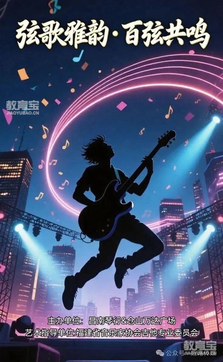 ? 这一次,我们以音乐为语言,以百弦为心声:?? 百人吉他宏大阵容,齐奏经典,重现感动;?? 古筝悄然融入,东方韵律与西方节奏完美相契;?? 人声细腻铺陈,以歌叙事,情深意长;?? 灯光与舞台视觉交织,营造沉浸式中国美学现场;?? 曲目多元,贯穿传统与现代,每一首都是耳畔的惊喜。这不仅是一场表演,更是一次“弦”上的旅行,是文化的回响,是情感的共鸣,是福州今秋不可错过的音乐事件!