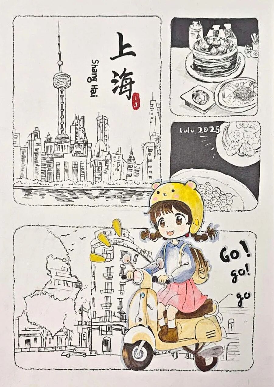 创 意 作 品 展2025暑假动漫插画动漫不止在屏幕里也在孩子们的画纸上飞翔Anime doesn"t just exist on the screenit also soars on children"s drawing papers.