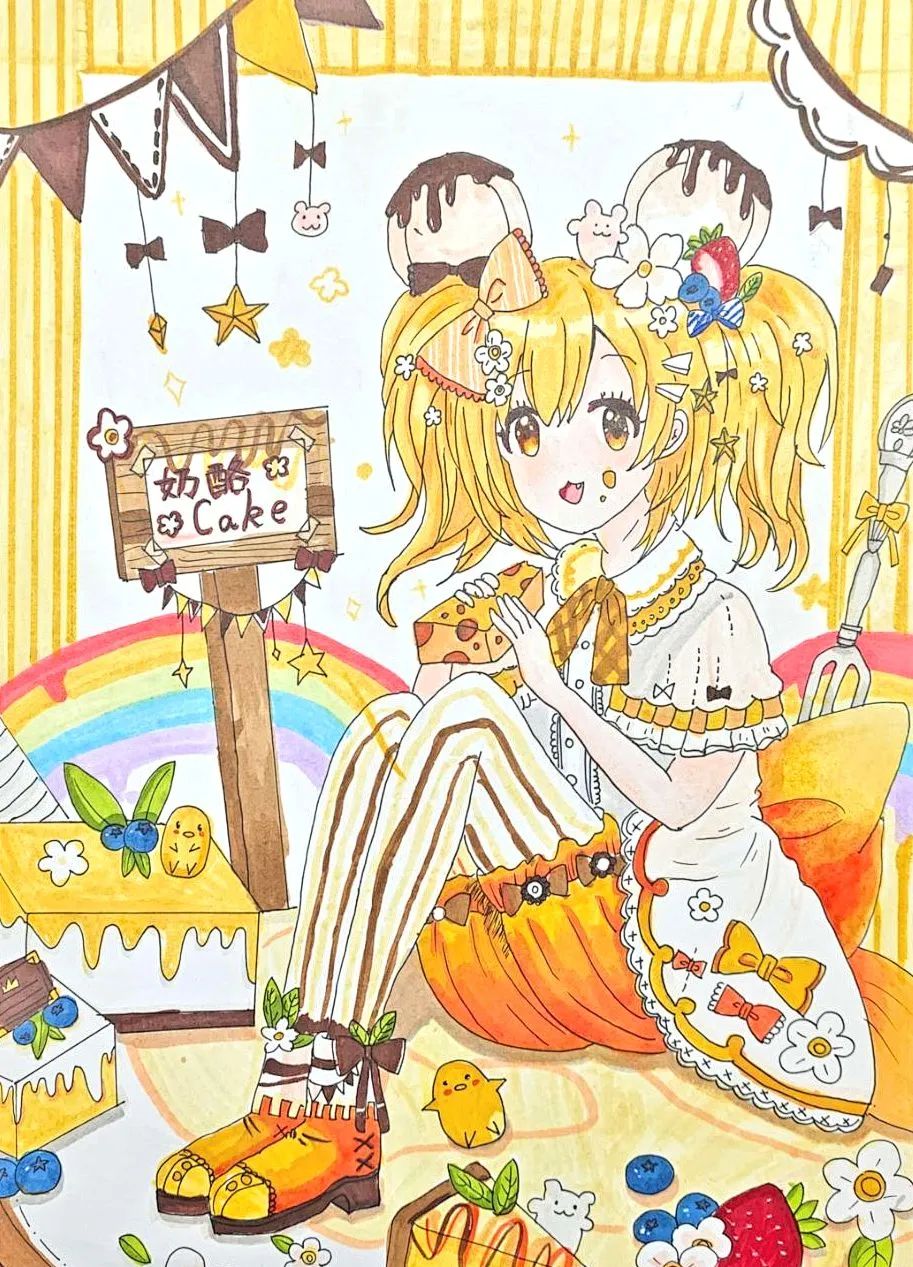 这些正是“画面构成”的基本训练家长们可能看到的是一幅幅有趣的作品但在过程中孩子们已经在学习如何去思考画面的层次感与空间感角色塑造的进步? character portrayal 在这个阶段孩子们不再满足于简单临摹动漫人物而是开始尝试原创角色的设计他们会思考:我的角色有什么性格?她/他生活在怎样的世界? 服装、道具和环境能否体现出这个人物的身份?