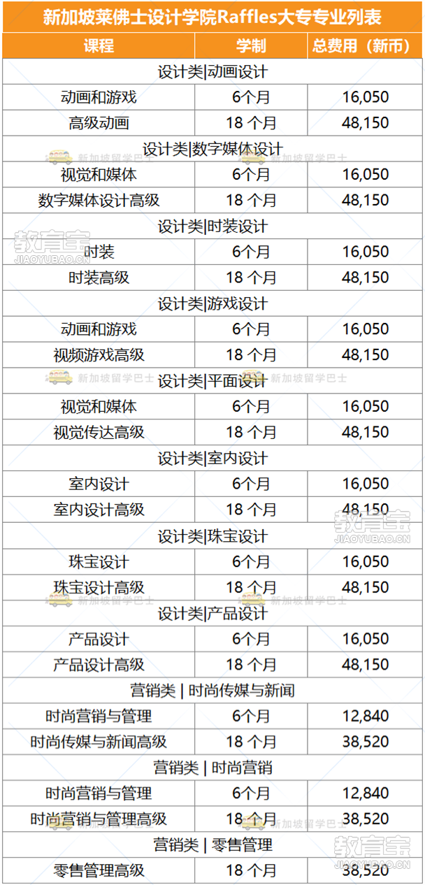 学生服务中心,图源:莱佛士设计学院官网05专业学费及升学方式大专课程