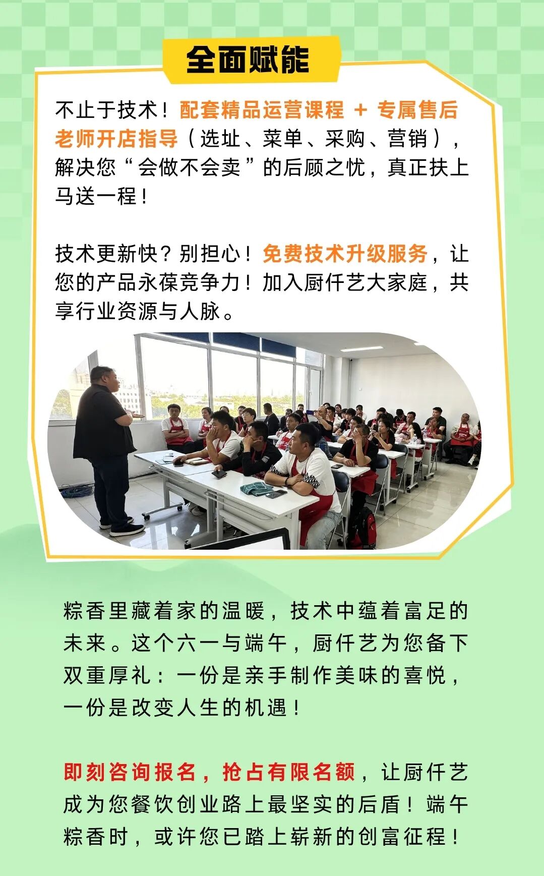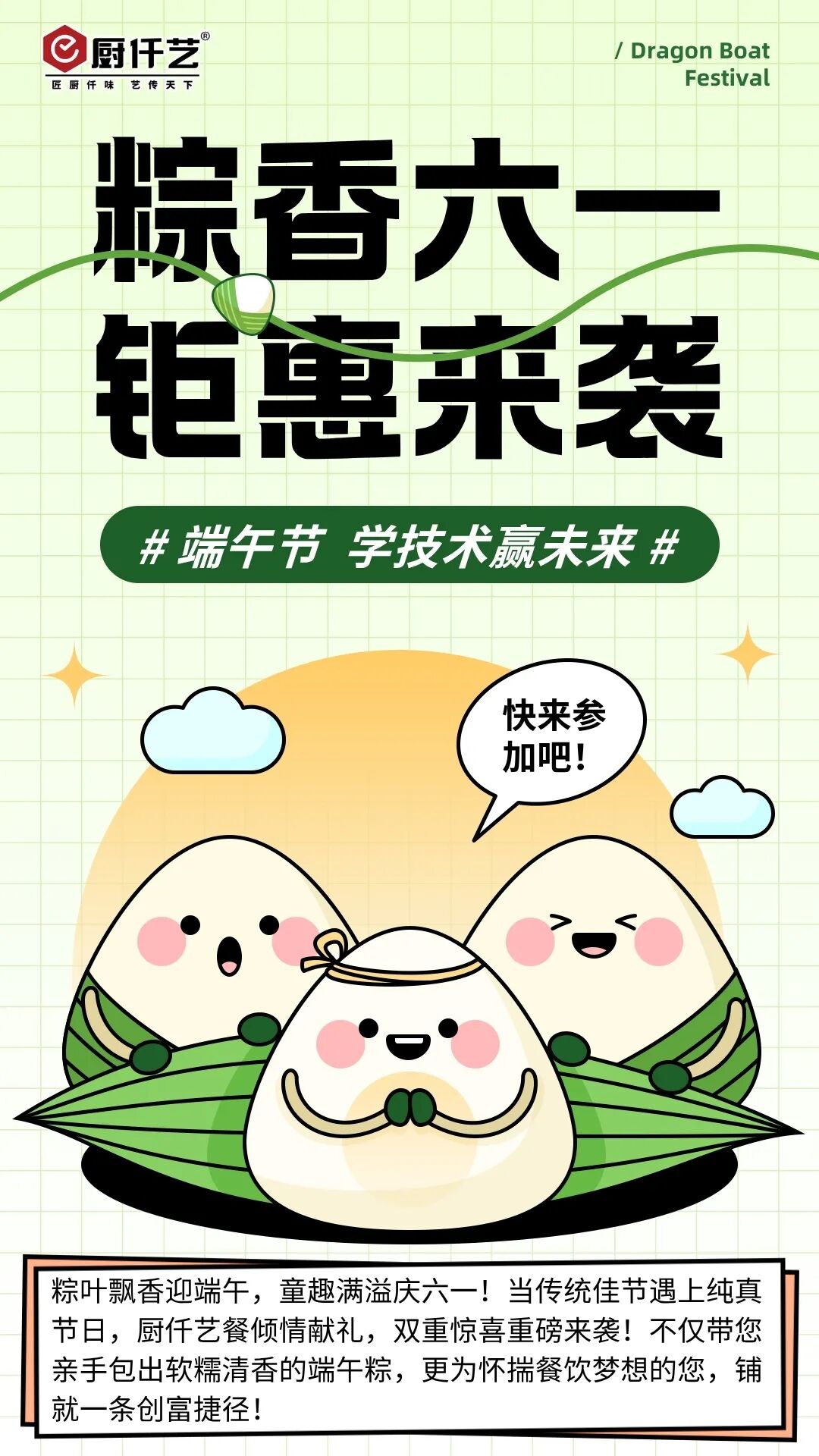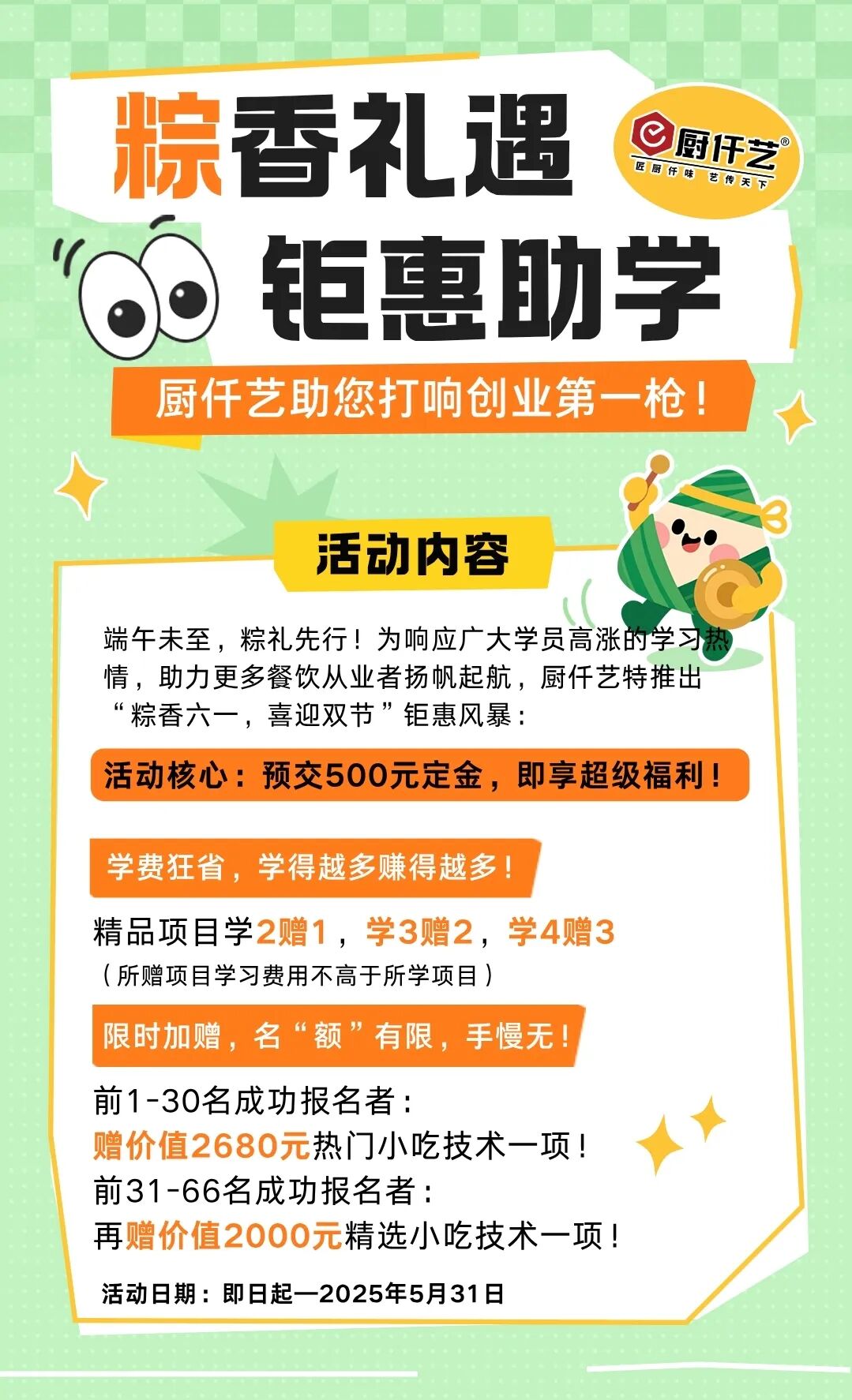 【端午遇六一 0元学技术】厨仟艺钜惠来袭,学技术赢未来,更有免费粽子教程等你来!