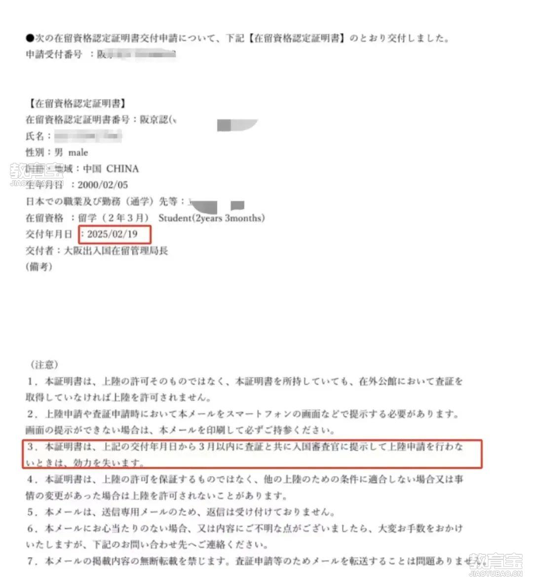 有的学校如果申请的是电子交付的话,是没有我们常见的在留资格认定证明书的,是以邮件的形式通知,上面记载了个人信息。