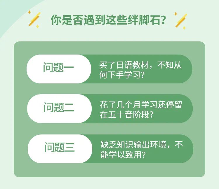 如果你遇到以下这几个问题……○ 正在学日语五十音,但是背过就忘?○ 想学日语,有没有快速入门的方法?○ 买了日语教材,却不知如何下手学习?○ 考试报名、备考技巧什么的哪里有?那么请收下这份日语1V1直播课福利(限每天前15名)。