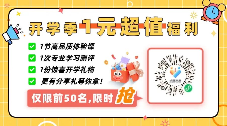 1元抢开学季超值福利(限前50名):高品质体验课+学习测评+精美礼…