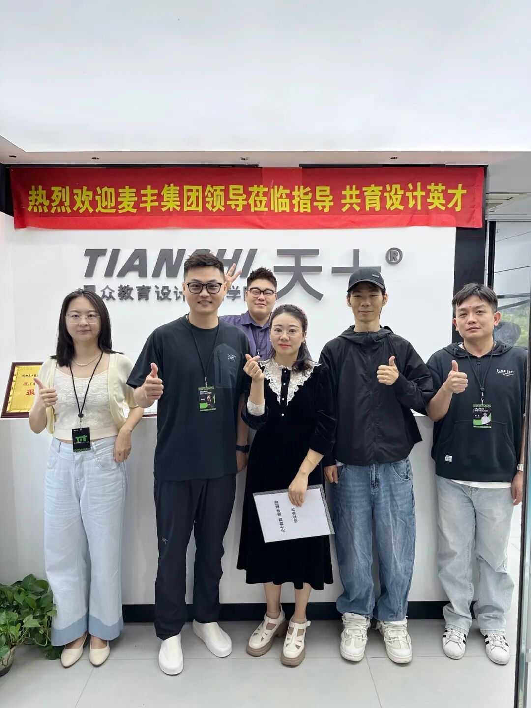 家人们!!2025年6月3日,天十教育和超厉害的麦丰集团手拉手“搞事情”,正式签了校企合作协议!以后学设计的同学,学习和就业都要开挂啦!当天,天十教育的校长热情满满地接待了麦丰集团的人事总监吴总,聊得那叫一个热火朝天!吴总在设计行业摸爬滚打多年,一张口就是“干货”:现在想当优秀设计师,光会画图可不行,得把设计软件玩得贼溜,脑袋里装满创意,沟通能力也不能差!他还剧透行业未来:设计会和数字化、智能科技“锁死”,发展机会多得数不清!