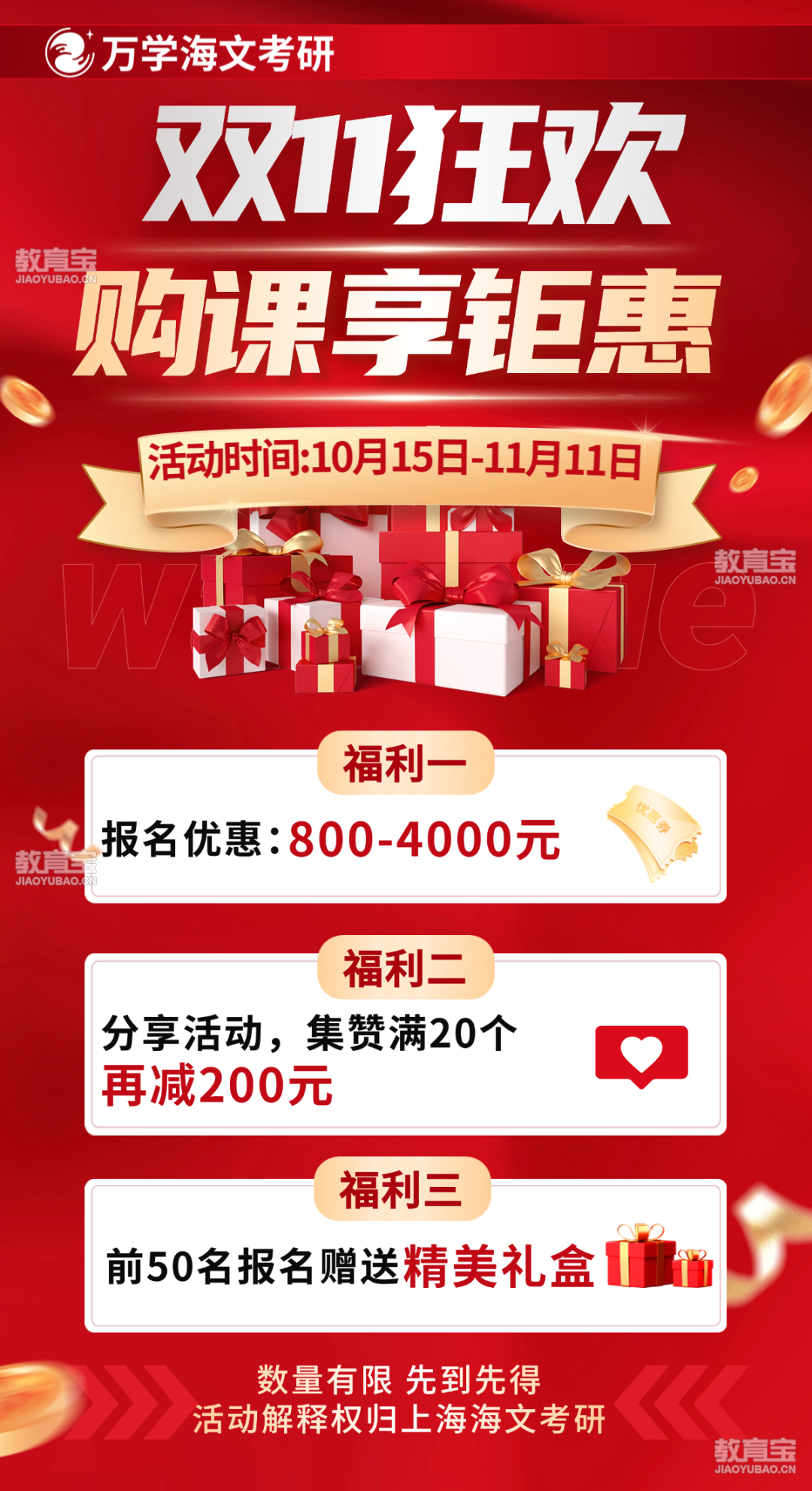 ??双十一团报活动开启??报名*高优惠4000元??分享活动再?200元??前50报名赠送精美学习礼盒??数量有限,先到先得