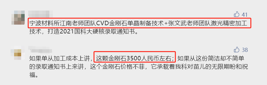 经过9年的时间,国科大已经以行动给出了答案——科教融合。这首先融入了录取通知书中。自2019年起,国科大都会给每一年的新生送出“硬核”录取通知书,里面嵌有国科大师生团队的科研成果,以此让新生直观感受到科学的风采。2019年的“龙芯三号”实物芯片,这是中国科学院自主研发的中国芯片;2020年的“来自宇宙深处的声音”黑胶光盘,是国科大师生通过中国天眼(FAST)捕获的15颗脉冲星信号。2021年的CVD金刚石单晶片校训卡,是中国科学院材料科学与工程团队以激光加工工程技术,将“博学笃志,格物明德”的校训刻在与天然金刚石硬度比肩的CVD金刚石单晶片上。听起来就感觉很厉害,看了评论区才明白原来这么厉害(和昂贵)……