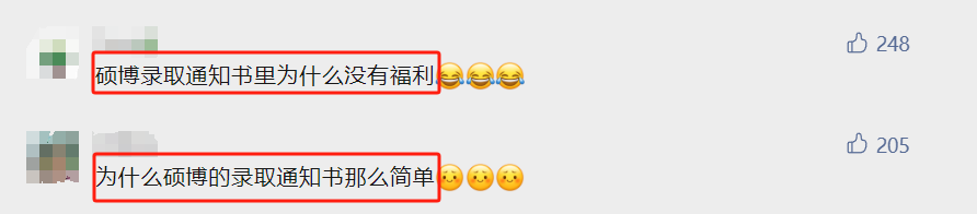 这个时候,不免好奇,那国科大的硕士生和博士生呢?他们忙着在官方公众号底下求“硬核”录取通知书。(bushi)