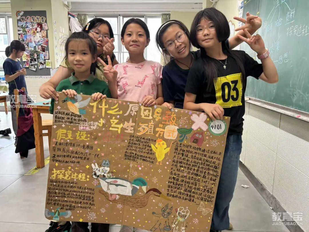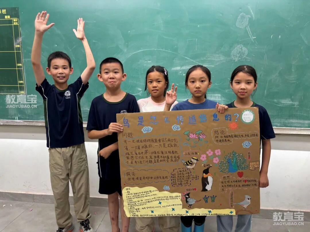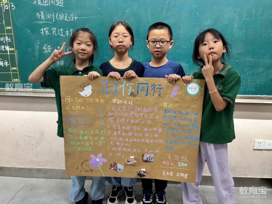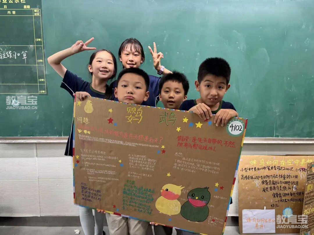 学习的结晶汇聚于精心制作的科学展板。孩子们梳理知识、提炼发现、设计版面,图文并茂地展示本学期关于鸟类的探究成果——从分类特征、飞翔奥秘到观察实践、模型制作。每一块展板都是思考的沉淀与创造力的绽放。
