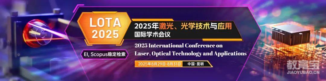 14、稳定EI收录|SPIE稳定出版|收录周期约会后4个月|录用率高2025年激光、光学技术与应用国际学术会议(LOTA 2025)2025 International Conference on Laser, Optical Technology and Applications大会时间:2025年8月29-31日大会地点:中国·昆明(线上同步)大会官网:www.iclota.org接受/拒稿通知:5-7个工作日收录检索:SPIE独立出版,有ISSN和ISBN双刊号,提交EI Compendex, Scopus和CNKI知网检索(预计会后3.5个月见刊、刊后1个月检索)征稿主题:①激光、红外、太赫兹、光谱、激光探测、激光雷达、超快激光技术、激光制造等激光应用类;②光学与器件、集成光学与光子学、光伏技术、精密仪器、液晶、特种光、发光材料、光通信、半导体、光学成像等光学应用/光学工程类;③光电子技术、量子光学、生物光子学、医学光电子技术、光学成像、光学测量、环境光学光电图像、太阳能发电、光电信号等光电子应用类④物理、材料等其他交叉相关主题。快速投稿通道:https://www.ais.cn/attendees/paperSubmit/IQMZEY?invite=S8111