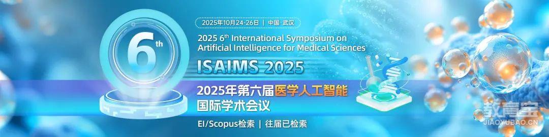 (1)ACM出版会议论文集(2)EI期刊16、【往届均已完成EI/scopus双检索】第六届医学人工智能国际学术会议(ISAIMS 2025)大会官网:www.isaims.org大会时间:2025年10月24-26日大会地点:中国-武汉(线上同步进行)主办单位:武汉科技大学截稿时间:以艾思为准承办单位:武汉科技大学计算机科学与技术学院、武汉科技大学大数据科学与工程研究院协办单位:武汉理工大学计算机与人工智能学院、中山大学健康医疗大数据国家研究院、阿姆斯特丹自由大学、中国抗癌协会中西整合食管癌专业委员会、JAIMS期刊编辑部收录检索:会议论文集:ACM独立出版-EI Compendex, Scopus;会议同步申请到EAI Endorsed Transactions on Pervasive Health and Technology的专刊版面(期刊版面有限,如有发表需要尽快联系 )投稿系统:https://www.ais.cn/attendees/paperSubmit/MIZJBU?invite=G8057参会链接:https://www.ais.cn/attendees/toSignUp/MIZJBU?invite=G8057 热门征稿主题:智能诊疗、精准医学、案件优先级、生物医学信息学、医学统计、医疗大数据处理、临床决策支持系统、医学自然语言处理、医学和病理图像的智能分析、机器学习和医学深度学习、智能医疗语音输入与识别技术、医院信息管理系统、智能药物研发、临床试验设计、虚拟诊疗系统、智慧健康管理、虚拟护理、远程医疗、疾病预测预报系、医疗可穿戴设备、智能医疗器械和医疗机器人、生物识别、数据安全、人工智能与中医、人工智能前沿技术以及其他相关主题联系方式