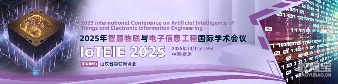 8、【IEEE出版 | 5A级省级协会主办 | 高录用,检索快】2025年智慧物联与电子信息工程国际学术会议(IoTEIE 2025)会议时间:2025年10月17日-19日会议地点:中国 青岛会议官网:www.ioteie.org主办单位:山东省物联网协会协办单位:山东交通学院 检索类型:EI, Scopus, IEEE Xplore审核录用:投稿后3-5个工作日热门征稿主题:物联网技术与应用、物联网与人工智能、物联网应用与服务、物联网应用创新、人机交互、电子与通信工程、电路与系统、信号和信息处理、智能仪表、电力电子技术、数字信号处理、电子设计自动化、半导体器件、并行与分布式计算等均可投递投稿链接:https://www.ais.cn/attendees/paperSubmit/UYU7NN?invite=L8133