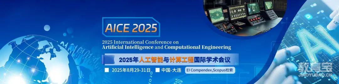 1、IET出版| 稳定检索EI会议|高录用|投稿优惠2025年人工智能与计算工程国际学术会议(AICE 2025)大会官网:www.icaice.org会议地点:中国-大连会议日期:8月29日-31日终轮截稿:8月22日【不再延期】论文接收通知:3-5个工作日主办单位:大连理工大学人工智能研究院 & 郑州大学收录检索:EI Compendex, Scopus投稿链接:https://www.ais.cn/attendees/index/B2IYAB?invite=B8093