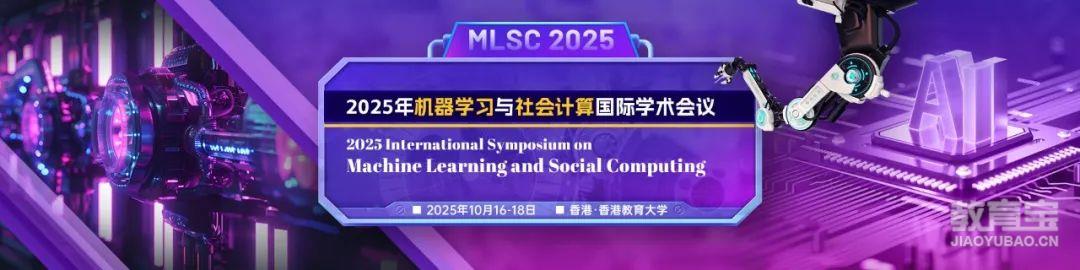 5、【?? ACM出版 | ?? EI检索稳定 | ?? 高层次国际会议 | ??? 香港举办】诚邀投稿第12届BESC暨2025年机器学习与社会计算国际研讨会(MLSC 2025)官网: www.ic-mlsc.org投稿链接:https://www.ais.cn/attendees/paperSubmit/FZRUQA?invite=D226会议时间:2025年10月16-18日主办单位:香港教育大学 会议地点: 香港出版检索:ACM出版, EI, Scopus热门征稿主题:大语言模型在社会计算中的应用/基于深度学习的文本分类方法/图卷积神经网络/多模态行为建模与预测/可解释神经网络模型/生成模型与数据合成/迁移学习与知识迁移等