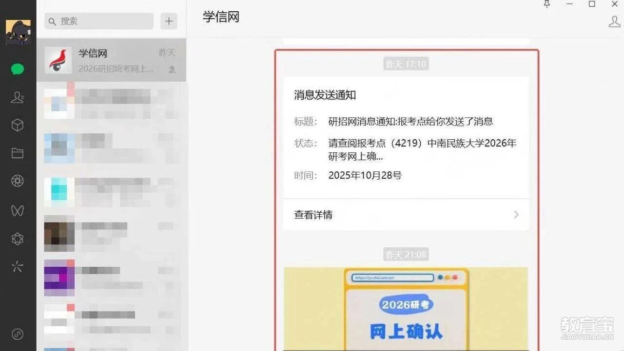 2025/10/31 0:01:3926考研的同学赶紧支棱起来!!!10月底到11月初,各省市会陆续启动网上确认——:没完成这一步,直接失去考试资格!真的要上点心啊,这事儿不是“小事儿”,是能不能参加考试的关键!*最最重要的提醒:一定一定要查自己所在地区的确认时间,别等错过才着急!具体时间不用瞎翻,研招网...