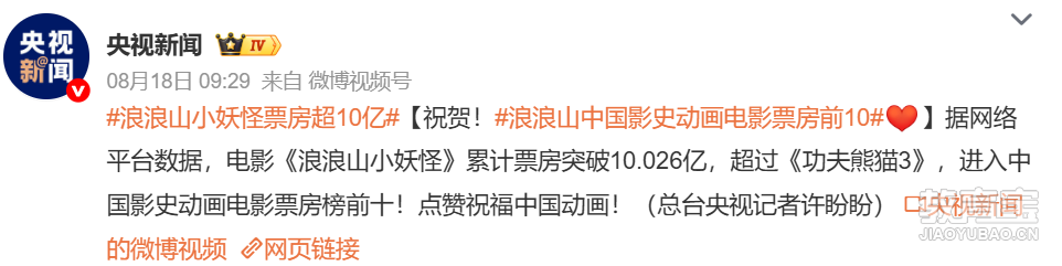 最近,电影《浪浪山小妖怪》的故事戳中了无数人的内心,收获了不少好评。截至目前,《浪浪山小妖怪》自上映以来累计票房已突破了10亿元,刷新中国影史国产二维动画电影票房纪录!图源:微博@央视新闻有细心的观众发现,在影片的片尾还特别致谢了北京航空航天大学新媒体艺术与设计学院,...
