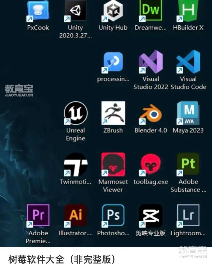 图源:@浙江工业大学而这些都离不开电脑软件,打开数媒技术专业学生的电脑,就像一个满汉全席:Adobe全家桶(如Ps、Ai、Pr等)、游戏制作软件unity、三维建模软件maya等等,应有尽有。
