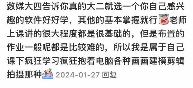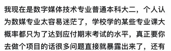 图源:小红书@pity.公共&拓展课则包括了马哲、马原、大学英语、等内容。大学四年,主打的就是一个广度拉满,但深度不够。在这样的前提下,很多数字媒体与技术专业的学生学着学着就会感到非常迷茫。