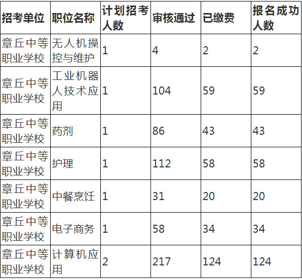 四、考试考试分为笔试和面试。(一)笔试笔试只考一科,满分100分。考试内容包括教育基础知识、专业知识和专业技能三个方面的内容。教育基础知识包括教育学、心理学、教育法律法规、教师职业道德、教育常识等内容;专业知识和专业技能为教育部公布的专业教学标准中的应知应会内容。为保证新进人员基本素质,笔试设定合格分数线,由济南市章丘区教育和体育局根据岗位招聘人数和笔试情况来确定。笔试采取统一考试、统一标准、统一阅卷的方式进行。笔试时间:2025年7月26日8:30—11:00。应聘人员凭笔试准考证和本人有效身份证件(与报名时一致)参加笔试。笔试*请登陆报名网站查询,面试人选名单在济南市章丘区人民政府网站(http://www.jnzq.gov.cn)公布。(二)面试面试时间、地点详见《面试通知单》。应聘人员领取《面试通知单》的同时,缴纳面试考务费70元/人。应聘人员凭《面试通知单》和本人有效身份证件(与报名时一致)参加面试。面试采取试讲的形式,主要考察应聘人员综合运用教育学、心理学知识和现代教育手段实现教学目的、组织课程实施、掌握课程内容、运用教学语言和教学资源、解决实际教学问题等方面的能力,以及使用普通话、板书、讲解及课堂示范等方面的技能。面试由招聘单位组织实施。面试人选从达到笔试合格分数线的应聘人员中,按照开考比例,根据招聘岗位和招聘人数由高分到低分依次确定(笔试*相同的,均确定为进入面试范围人选),并面向社会公布。笔试合格人数出现空缺的岗位,取消招聘;达不到开考比例的,按实有合格人数确定面试人选。面试人选未按规定时间向招聘单位提交有关材料的,视为放弃。经审查不符合应聘条件的,取消其面试资格。因放弃或取消资格造成的空缺,从达到笔试合格分数线的应聘人员中按笔试*由高分到低分依次递补。面试设定合格分数线为60分,达到合格分数线的方可列为考察体检范围。笔试*、面试*、考试总*均计算到小数点后两位数,尾数四舍五入。面试结束后,按照笔试*占40%、面试*占60%的比例,百分制合成考试总*。根据考试总*,由高分到低分按不高于1:2的比例,确定进入考察体检范围人选并面向社会公布。同一招聘岗位应聘人员出现考试总*并列的,按照面试*由高分到低分确定进入考察体检范围人选,面试*仍相同的进行加试。